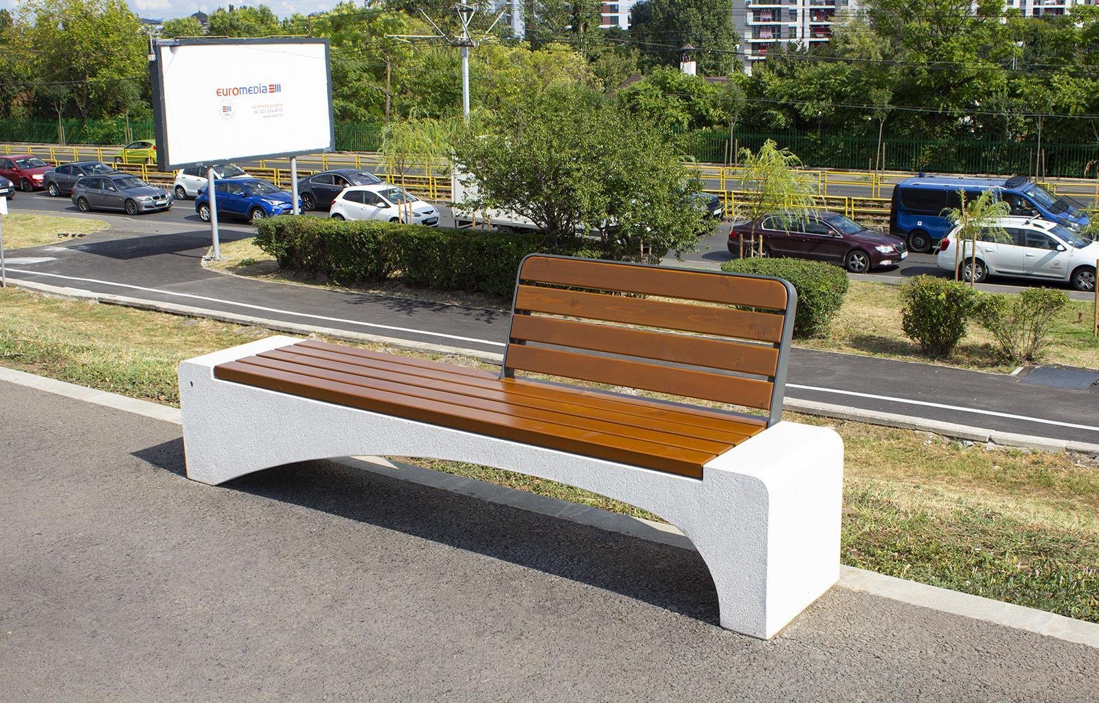Shaped concrete bench