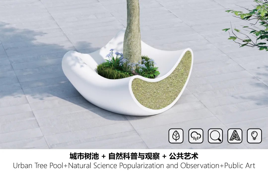 The project hopes that the concept of recyclability and environmental protection can be integrated into our urban public art, and the functionality of furniture can be mixed in a natural form to form a futuristic urban public space product. The meaning of design is that it can provide all users and urban residents with a sense of visual and spiritual resonance and participation, and urban public furniture not only provides an artistic beauty, but its value is also to create a positive attitude for the society. Facing the future.